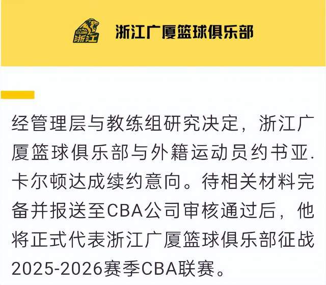 在经过了多次沟通后,卡尔顿还是接受了浙江广厦的报价,而在许钟豪退役的情况下,卡尔顿的续约非常关键,他可以给胡金秋减少很多的压力。