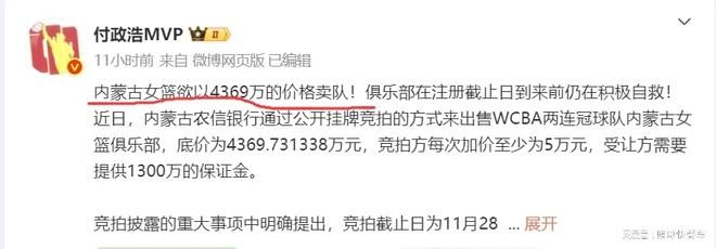 中国女篮又一次遭遇打击了。作为曾经的女篮联赛霸主,内蒙古女篮在前阵子传出过退赛后,近日,他们又再度成为了焦点,这一次,他们竟然开始公开甩卖球队了。根据数据显示,内蒙古女篮准备以4369万元的价格卖队,不过,截止到目前,并没有任何企业愿意接手,随着WCBA新赛季注册截止日期的临近,内蒙古退出WCBA联赛,已经是板上钉钉的事实。