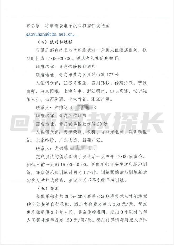 据探长了解,中国篮协已向CBA各俱乐部下发新赛季体测通知。