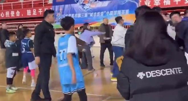 近期辽宁盘锦第三届“城市传奇”小篮球精英赛,在比赛中两名小球员发生争执矛盾,出现互相推搡和肢体冲突。在裁判员已经吹停比赛,准备将发生冲突的两名小球员拉开的时候,在场边观战的小朋友家长突然冲进场内,并且大打出手,其他孩子的家长见状也冲进场内,现场一度十分的混乱并演变成为聚众斗殴事件,影响十分恶劣。