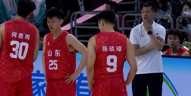 到了第二节,山东队继续追着打,而裁判似乎很“照顾”山东的球员,频频吹罚犯规,王岚钦更是早早吃到3次犯规。随着胡明轩抢断打成2分,广东队27-17领先两位数了。不过,山东队看来真不弱,随后轰出一波5-0,迫近分差。尽管前14投仅2中,但广东队的三分球是不弱的,凭借胡明轩连进3分,广东队再次把领先拉开到了两位数。王岚钦连拿6分,帮助山东队追到只差3分。陶汉林篮下强吃得手,带队追到38-38平。广东队打出6-2,半场战罢,以44-40领先4分。陶汉林8投7中,拿到15分9篮板。广东队外线手感不佳,半场20投4中,命中率仅20%。