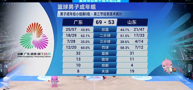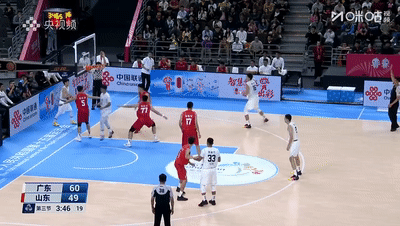 第三节杜锋放弃了固定五上五下,后半节改打赵睿+徐杰+贺希宁的三小后场,赵睿单节火力全开论进3记三分轰下13分带领广东再度取得双位数领先,山东队也在陶汉林下场后陷入得分断电,三节战罢,广东队69-53领先山东16分。
