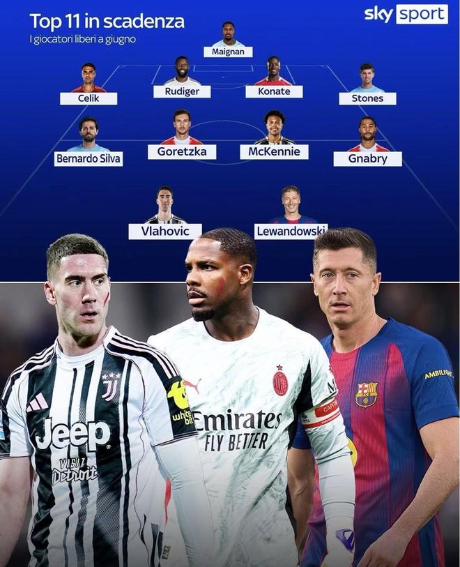 北京时间12月26日,意大利天空体育列出了现有合同2026年6月到期的最佳11人阵容,迈尼昂、吕迪格、科纳特、格纳布里、弗拉霍维奇以及莱万多夫斯基在列。