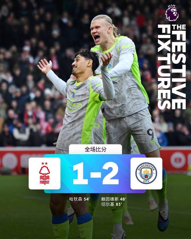 曼城客场2-1诺丁汉森林