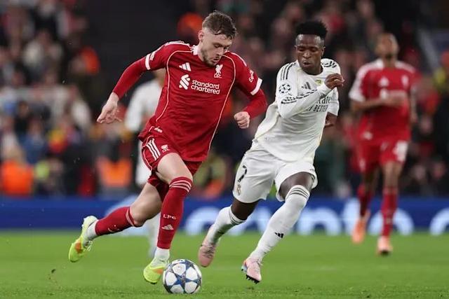 基于这场比赛的表现,答案是:绝对可以。他让维尼修斯,这位当今足坛最顶尖的球员之一,度过了一个艰难夜晚。而在进攻端,他也送出了几次穿透防线的精彩传球,给埃基蒂克等人制造了机会。实际上,维尼修斯在上半场就该被罚下。他在第23分钟因拉拽布拉德利而被黄牌警告,随后在被这位利物浦右后卫身体对抗挤掉球后明显假摔,但还没有拿到第二张黄牌。