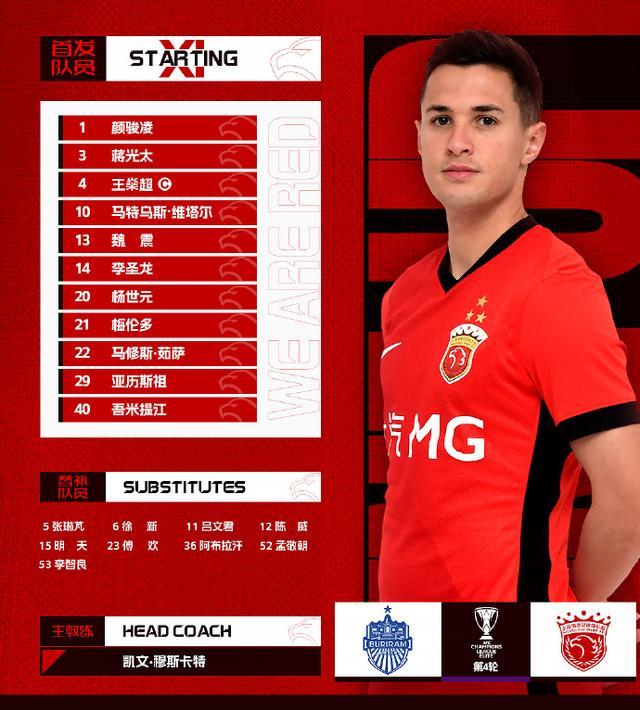 此外,蒯纪闻、李新翔因驰援上海全运 U20 男足,上海海港队也少了两名实力不俗的轮转生力军。这场客场交战泰国武里南联队的比赛,包括魏震、李圣龙、杨世元和亚力克斯・祖等之前的轮转球员,都获得了宝贵的首发机会。海港主帅穆斯卡特使用的 541 阵型颇有针对性,立足于先确保防守不丢球。此前在亚冠有出场记录的门将陈威此役担任替补,颜骏凌则迎来海港队生涯第 500 次出场。