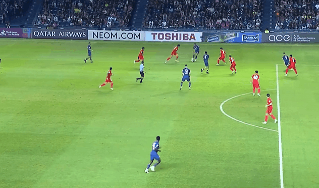 下半场回来,穆斯卡特将徐新换上。两队继续保持激烈的比拼,武里南联加强了中场逼抢,并且丢球之后的就地反抢,形成了第一道防守线,迫使海港的进攻难以第一时间组织起威胁的攻势。