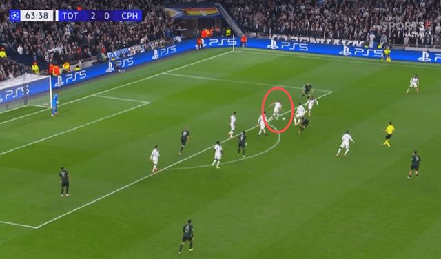 热刺vs哥本哈根一役,第64分钟,范德芬上演超级奔袭表演: