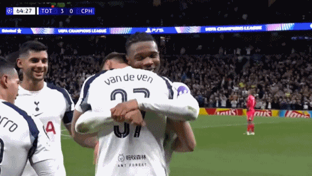 范德芬进球之后,热刺全队送上祝贺,球迷欢呼庆祝,起立致敬!这样的超级进球并不多见,能现场见证实属幸运,这是足以预定普斯卡什奖的杰作。