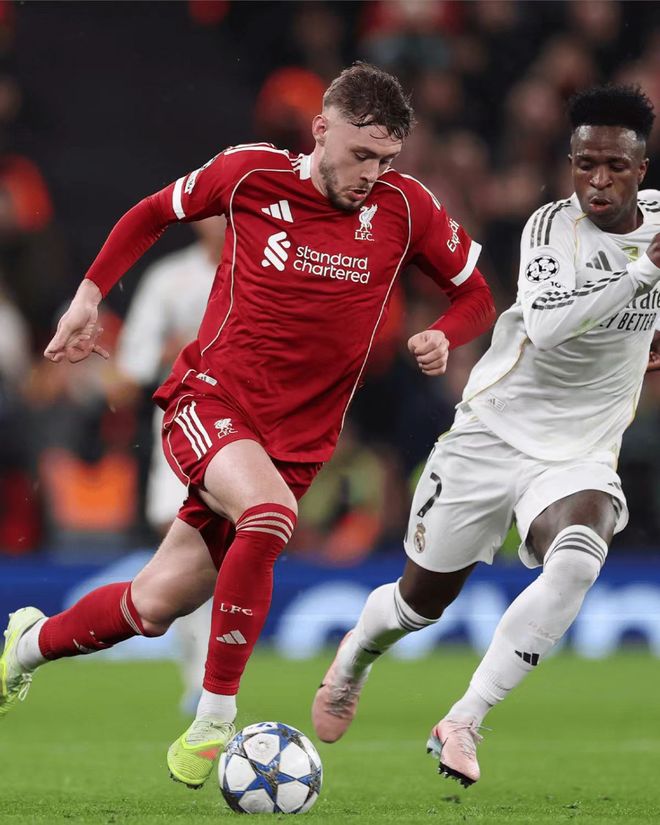 于是,到了本轮欧冠,布拉德利正面撞上维尼修斯,新赛季开打以来西甲现象级的攻击手。面对巴西人,布拉德利并没有怯场,在进攻端也有画面,开场阶段他便接到了萨拉赫的横传,一路煲汤杀进皇马腹地,让维尼修斯先赔了一张黄牌。