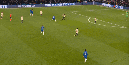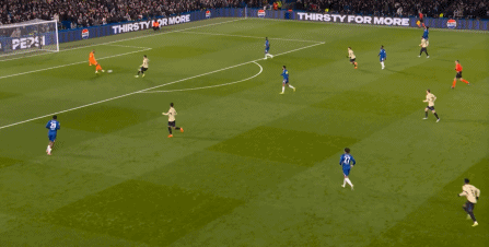 所以在攻守形势并未逆转的情况下,下半场的切尔西依旧占据着优势,可利用的空间随着人数优势显现: