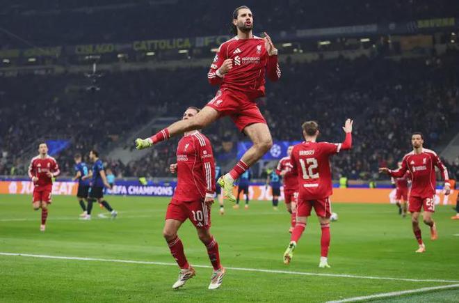 比赛第 88 分钟,替补登场的维尔茨在禁区内被国米后卫绊倒,主裁判果断指向点球点。索博斯洛伊站在球前,深吸一口气,助跑,推射右下角——国米门将索默判断对了方向,却无力阻止皮球入网。这是本赛季索博斯洛伊直接参与的第10个进球(5球5助攻),更重要的是,这个进球让利物浦延续了一个惊人纪录:过去4年4次做客圣西罗球场(国米称梅阿查)保持全胜,其中包括2022年欧冠1/8决赛2-0击败国米的关键战役。
